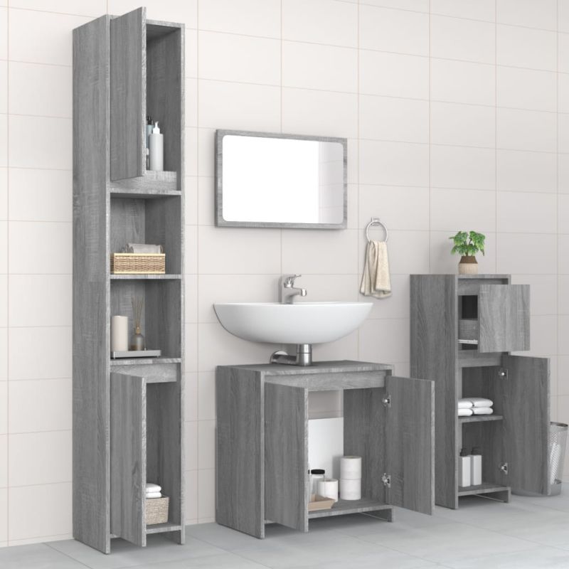 Комплект мебели за баня от 4 части сив сонома инженерно дърво