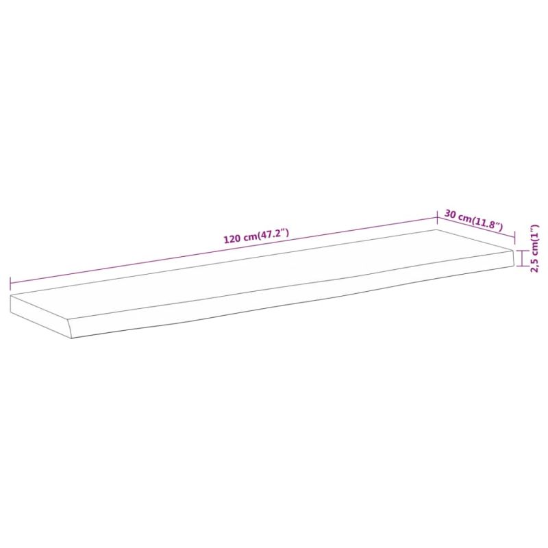 Стенен рафт, 120x30x2,5 см, правоъгълен, масив акация, жив ръб