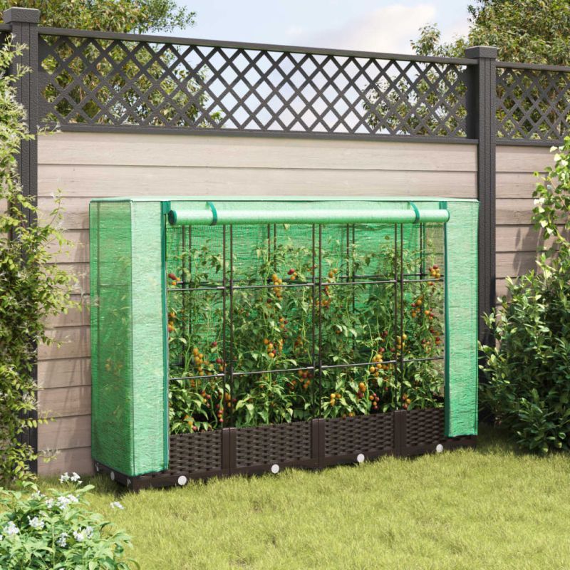Тази повдигната леха с калъф оранжерия осигурява много пространство за отглеждане със здравата си носеща рамка.Здрава конструкция: Повдигнатата леха, изработена от полипропилен, има здрава рамка от железни тръби отгоре, която позволява на растенията да растат и да се катерят през нея.Функционален калъф: Повдигнатата леха е с водоустойчив полиетиленов калъф, който предпазва растенията от екстремни температури и не допуска насекоми, птици и дребни животни.Практичен дизайн: Повдигнатото легло е снабдено с ципове за проветряване, които ви позволяват да регулирате покривалото според нуждите. Освен това в горната част има въжета, които улесняват закрепването на мрежата към тръбата.Дизайн с вид на ратан: Повдигнатото легло с дизайн, наподобяващ ратан, придава естествен чар на външното ви жизнено пространство.Широки приложения: Повдигнатата леха осигурява достатъчно пространство за вашите растения, зеленчуци, билки и цветя. Можете да го използвате в градини, дворове, балкони и т.н.