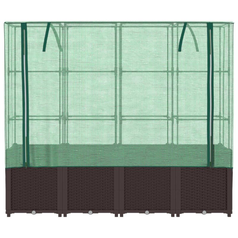Тази повдигната леха с калъф оранжерия осигурява много пространство за отглеждане със здравата си носеща рамка.Здрава конструкция: Повдигнатата леха, изработена от полипропилен, има здрава рамка от железни тръби отгоре, която позволява на растенията да растат и да се катерят през нея.Функционален калъф: Повдигнатата леха е с водоустойчив полиетиленов калъф, който предпазва растенията от екстремни температури и не допуска насекоми, птици и дребни животни.Практичен дизайн: Повдигнатото легло е снабдено с ципове за проветряване, които ви позволяват да регулирате покривалото според нуждите. Освен това в горната част има въжета, които улесняват закрепването на мрежата към тръбата.Дизайн с вид на ратан: Повдигнатото легло с дизайн, наподобяващ ратан, придава естествен чар на външното ви жизнено пространство.Широки приложения: Повдигнатата леха осигурява достатъчно пространство за вашите растения, зеленчуци, билки и цветя. Можете да го използвате в градини, дворове, балкони и т.н.