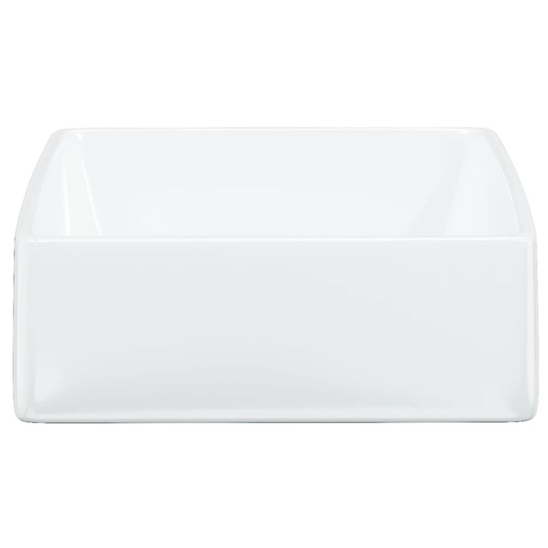 Изработена от керамика, тази квадратна мивка е елегантно и непреходно допълнение към всяка баня, умивалня или мокро помещение. Издръжлив материал: Мивката за баня е изработена от гладка керамика. Керамичните материали са здрави и издръжливи. Този материал е дълготраен избор.Елегантен стил: Мивката е с красива квадратна форма, която придава на банята ви семпъл, но елегантен стил.Силно гланциран финиш: Финишът с гланцово покритие придава очарователен вид на тази мивка и я прави лесна за почистване. Забележка:Кранът и отводнителната тръба не са включени в доставката.