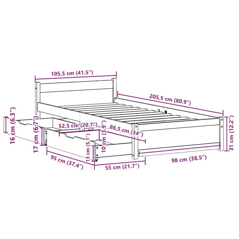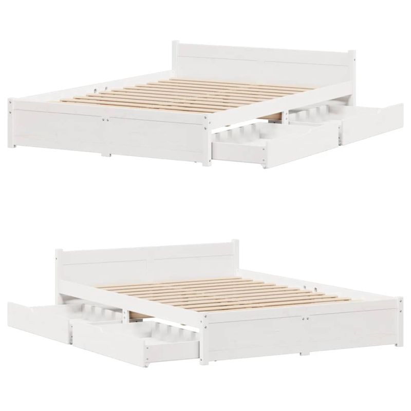 Осигурете си по-добър спокоен нощен сън с тази рамка за легло! Тя представлява приветливо допълнение към всяка спалня. Стабилна и дълготрайна рамка: Масивната борова дървесина е известна със своята здравина и издръжливост. Нейните прави зърна и отличителни възли допринасят за рустик чара ѝ.Решетъчна основа за оптимална опора: Рамката на леглото е оборудвана с решетъчна основа за опора и дишане на вашия матрак.Гъвкава табла: Тази рамка за легло се предлага с табла, която осигурява отлична опора за гърба, когато седите в леглото, за да четете или гледате телевизия, като същевременно служи и като декоративен елемент.Използвайте пълноценно пространството: Тази рамка за легло разполага с две чекмеджета отдолу, осигуряващи съхранение на предмети като допълнително спално бельо, сезонни дрехи и играчки.Маневреност без усилие: Това чекмедже за съхранение под леглото разполага с четири колелца, осигуряващи плавна и лесна маневреност за плъзгане и изваждане под леглото ви. Добре е да се знае:Към това легло не е включен матрак. Ние предлагаме разнообразна селекция от матраци. Можете да проверите нашия магазин за подходящ матрак.