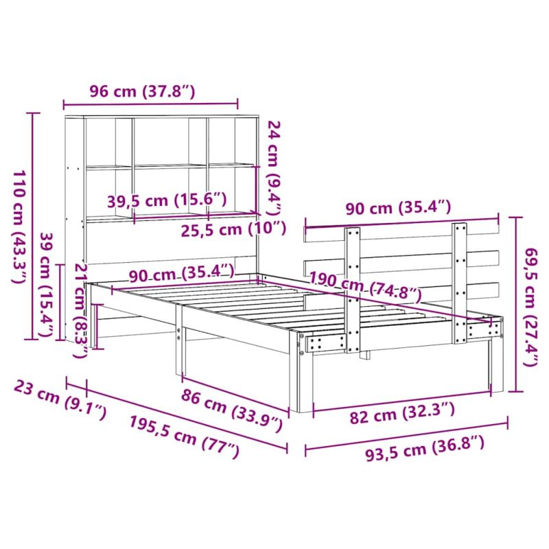 - Купете Легло с рафтове за книги, без матрак, 90x190 см, бор масив или друг продукт от нашата промоционална секция за да получите 3% отстъпка.