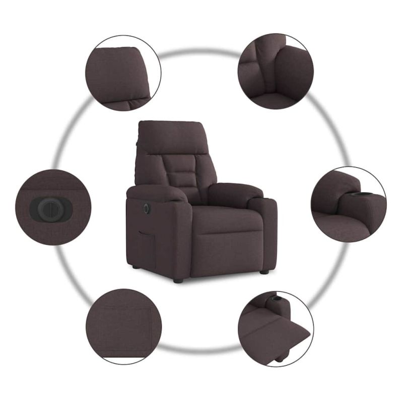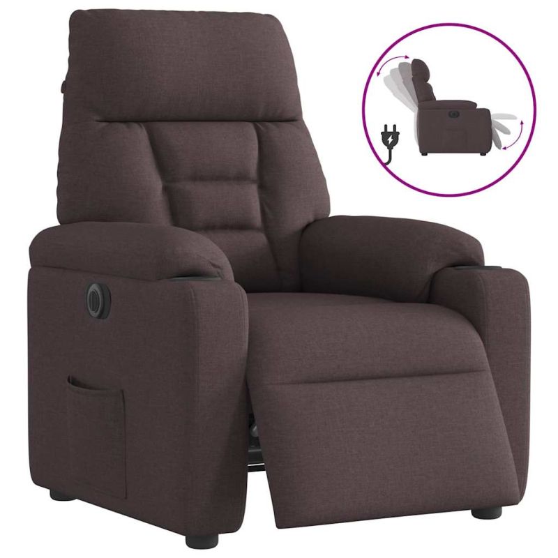 Електрически реклайнер стол, тъмнокафяв, текстил
