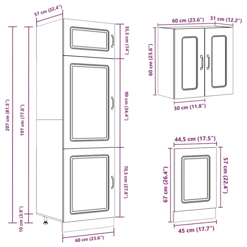 Този комплект кухненски шкафове от 8 части, с елегантния си дизайн, оптимизира кухненското ви пространство и осигурява достатъчно място за съхранение на вашите лични вещи! Стабилен и издръжлив материал: Инженерната дървесина е издръжлив и стабилен материал с гладка повърхност, устойчива на влага, деформация и цепене, което го прави надежден избор за различни проекти.Достатъчно място за съхранение: Комплектът кухненски шкафове има много отделения и предлага достатъчно място за съхранение на купи, чинии, тенджери и други кухненски уреди.Регулируеми крачета: Долните шкафове разполагат с регулируеми крачета, които могат да се регулират по височина, за да отговарят на оформлението на вашата кухня.Лесни за поддръжка: Благодарение на гладката си повърхност, тези кухненски шкафове се почистват лесно с влажна кърпа и изискват по-малко поддръжка. Предупреждение:Този продукт трябва да бъде обезопасен чрез монтиране на работен плот. Подходящ за имайте предвид:Винт(ове) и дюбели за вътрешната част на стената не са включени. Потърсете и използвайте винт(ове) и дюбели, подходящи за вашите стени. Ако не сте сигурни, потърсете професионален съвет. Прочетете и следвайте внимателно всяка стъпка от инструкциите.Плотът, мивката и смесителят не са включени в доставката.