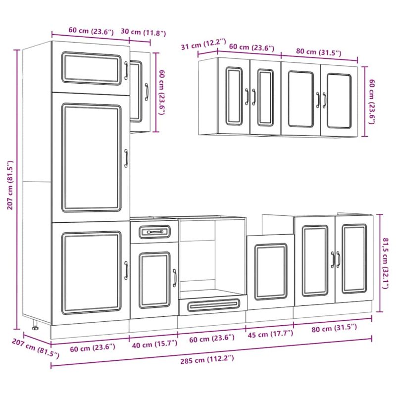 Комплект кухненски шкафове от 8 части Kalmar, инженерно дърво