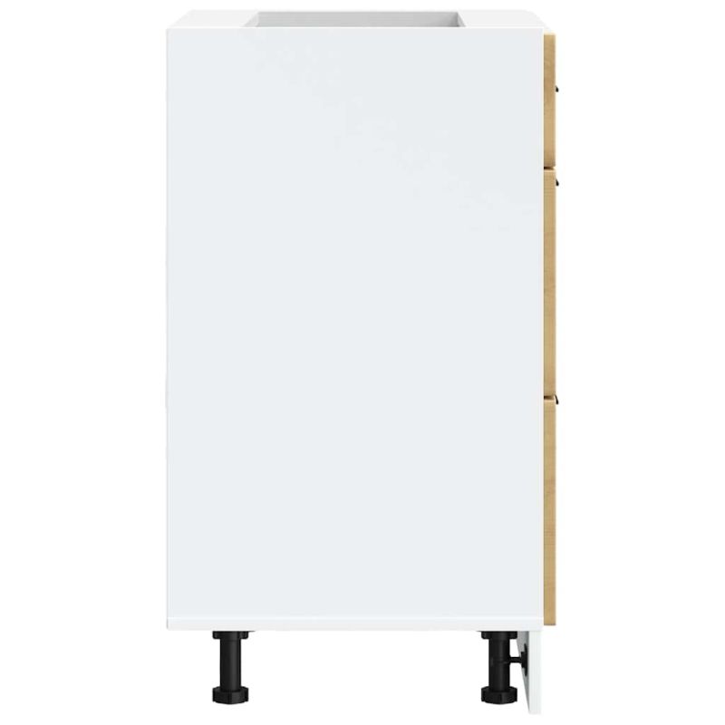 Този кухненски шкаф оптимизира пространството в кухнята ви, като осигурява достатъчно място за съхранение на личните ви вещи! Стабилен и издръжлив материал: Инженерната дървесина е издръжлив и стабилен материал с гладка повърхност, която е устойчива на влага, изкривяване и разцепване, което я прави надежден избор за различни проекти.Голямо пространство за съхранение: Основният кухненски шкаф предлага достатъчно място за съхранение на купи, чинии, тенджери и други кухненски уреди.Регулируеми крачета: Крачетата на този шкаф могат да се регулират по височина, за да отговарят на разположението на кухнята ви.Лесна поддръжка: Благодарение на гладката си повърхност този кухненски шкаф се почиства лесно с влажна кърпа и изисква по-малко поддръжка. Внимание:За да се предотврати преобръщане, този продукт трябва да се използва с предоставената приставка за стена. Добре е да се знае:Винт(ове) и щепсел(и) за вътрешността на стената не са включени. Търсете и използвайте винт(ове) и дюбел(и), подходящи за вашите стени. Ако не сте сигурни, потърсете професионална помощ. Прочетете и следвайте внимателно всяка стъпка от инструкциите.