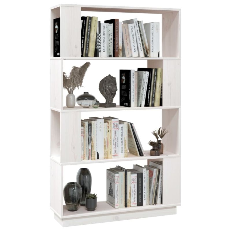 Библиотека/разделител за стая, бяла, 80x25x132 см, бор масив