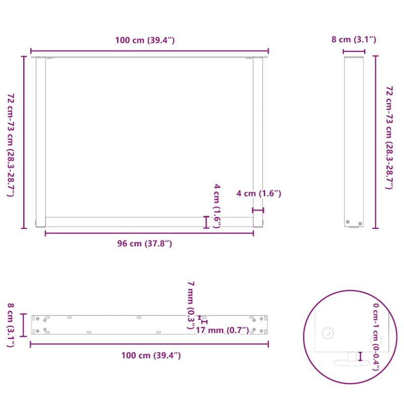 Тези крака за трапезарна маса съчетават форма и функция. Това е идеален избор за персонализиране на вашата трапезарна маса. Издръжлив материал: Този крак за трапезарна маса е изработен от прахово боядисана стомана, което го прави здрав и дълготраен.Здрава конструкция: Квадратният дизайн на крака за трапезарна маса гарантира, че той може да поддържа тежък плот.Практичен дизайн: Този крак за трапезарна маса включва регулируеми нивелири, осигуряващи стабилност дори на неравни подове и минимизиращи драскотините по пода. Освен това, скобата е с предварително пробити отвори и включени в доставката винтове, които могат да се използват за закрепване на крака към плота на масата (не са включени), което улеснява сглобяването.Модерна естетика: Кракът на масата има изчистени линии и геометричен дизайн, за да подобри цялостния вид на мебелите. И се съчетава добре с всеки плот за маса с подходящ размер. Полезно е да знаете:Доставката съдържа само крака за маса, плотът не е включен.
