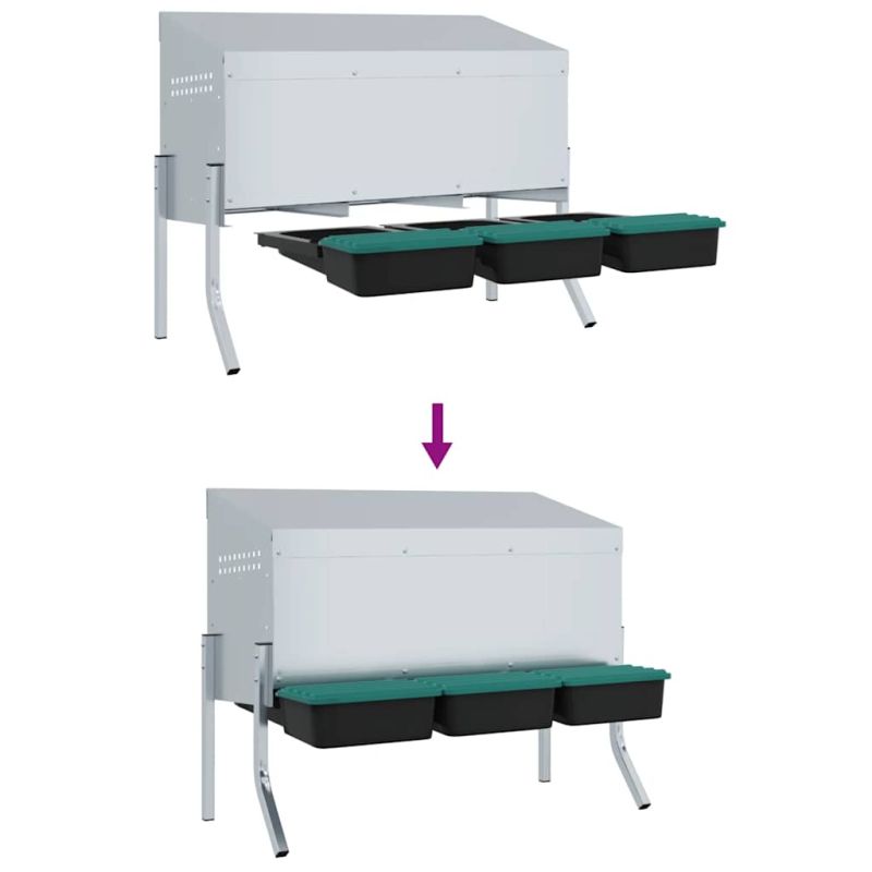 Кутия за гнездене за пилета с 3 отделения и крака, поцинкована стомана