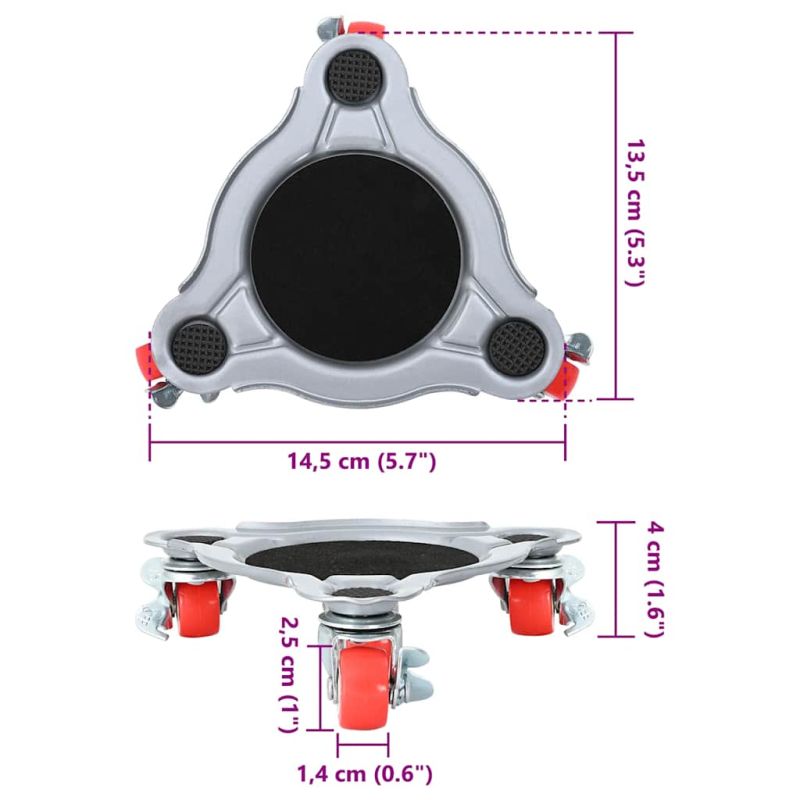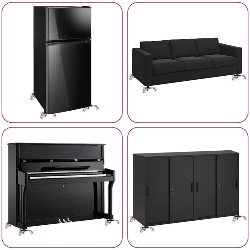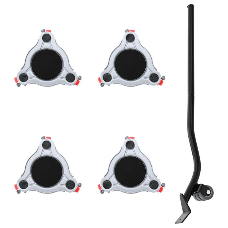 Тези мебелни колелца улесняват преместването на тежки предмети като дивани и хладилници, позволявайки бързо пренареждане, като същевременно намаляват натоварването на гърба ви. Здрава и стабилна: Стоманената рамка е впечатлена със своята здравина, издръжливост и устойчивост на корозия, което я прави идеален избор за различни приложения, включително производство на мебели и строителство.Противоплъзгащи подложки: Мебелното ролко е проектирано с противоплъзгащи подложки в центъра и в три ъгъла, осигуряващи омекотена опора и гарантиращи, че вашите ценни предмети ще останат защитени от надраскване по време на движение.360° въртящи се колелца: 4-те гумени колелца са проектирани с 360° въртящи се сачмени лагери, осигуряващи плавно, тихо и без усилие движение. За допълнителна стабилност, три от колелцата са заключващи се, като държат мебелите ви сигурно на място.Лесни за употреба: Комплектът за преместване на мебели включва повдигач с дълга щанга, който ви позволява лесно да повдигате мебели, което улеснява плъзгането на количката с колелца отдолу. Тази функция предлага удобно и лесно решение за преместване на тежки предмети.Широки приложения: Количката с крака е идеална за широка гама от мебели, от дивани до шкафове, което я прави перфектна за употреба у дома, в офиса или в работилници.