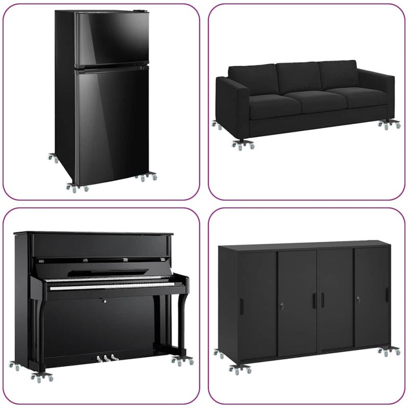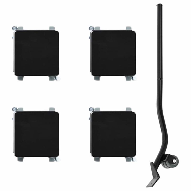 Тези мебелни колелца улесняват преместването на тежки предмети като дивани и хладилници, позволявайки бързо пренареждане, като същевременно намаляват натоварването на гърба ви. Здрава и стабилна: Стоманената рамка е впечатлена със своята здравина, издръжливост и устойчивост на корозия, което я прави идеален избор за различни приложения, включително производство на мебели и строителство.360° въртящи се колелца: 5-те гумени колелца са проектирани с 360° въртящи се сачмени лагери, осигуряващи плавно, тихо и без усилие движение. За допълнителна стабилност, 2 от колелцата са заключващи се, като държат мебелите ви сигурно на място.Безопасна и омекотена опора: Мебелното преместване е проектирано с L-образни преградни ръбове с противоплъзгаща подложка, поставена в центъра, осигуряваща омекотена опора и гарантираща, че вашите ценни предмети ще останат защитени от надраскване по време на движение.Лесна за употреба: Комплектът за преместване на мебели включва повдигач с дълга щанга, който ви позволява лесно да повдигате мебели, което улеснява плъзгането на количката с колелца отдолу. Тази функция предлага удобно и лесно решение за преместване на тежки предмети.Широки приложения: Количката с крака е идеална за широка гама от мебели, от дивани до шкафове, което я прави перфектна за употреба у дома, в офиса или в работилници.
