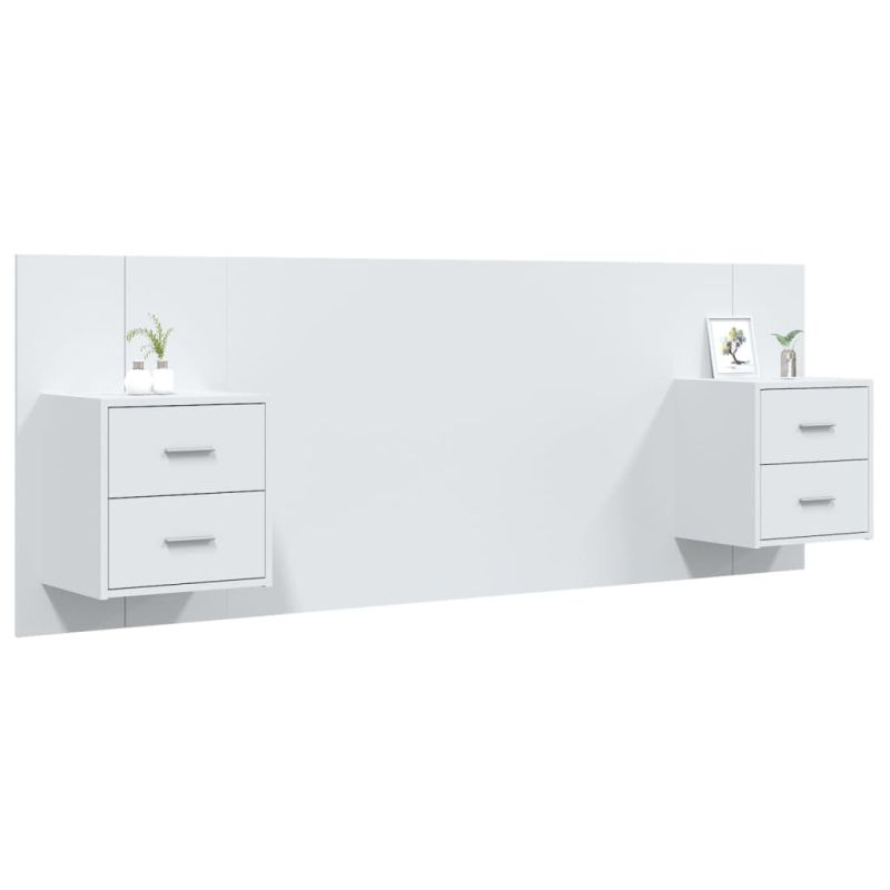 Горна табла за легло с шкафчета, бяла, инженерно дърво