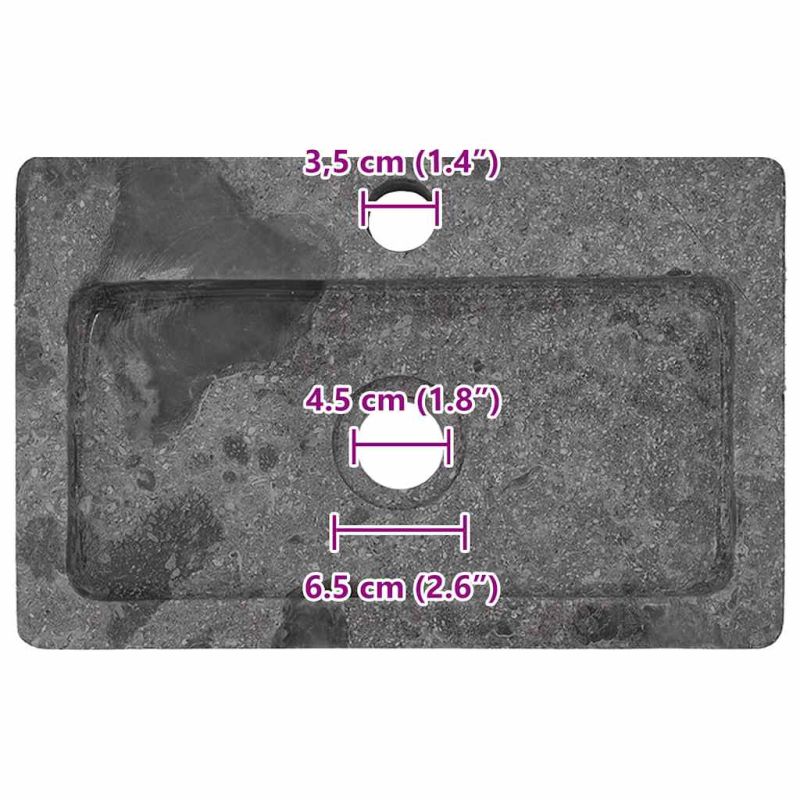 Тази мраморна мивка за стенен монтаж излъчва модерен чар и ще бъде истински привличащ вниманието акцент във вашата баня или тоалетна. Тази впечатляваща мивка е не само удобна мивка за ежедневна употреба, но и украшение за вашето жилищно пространство. Изцяло ръчно изработена от изящен мрамор, мивката е изключително здрава и същевременно с елегантна визия. Тя със сигурност ще подхожда на всеки интериорен стил. Освен това мивката се почиства много лесно. Можете да я окачите на стената с включените болтове и да я използвате като мивка върху плот. Забележка: Мраморът е естествен продукт и поради това може да има разлики в цвета. Особено за мрамора със сив цвят, продуктът на живо може да бъде по-светъл или по-тъмен от този на снимките, а понякога в продукта може да има смесица от цветове. Вижте последното изображение за примери на реалния цвят на продукта. Децата трябва да бъдат наблюдавани, за да се гарантира, че не играят с уреда. Пазете децата далеч от зоната за сглобяване. Внимание: Прочетете внимателно инструкциите преди употреба и ги запазете за по-нататъшни справки.