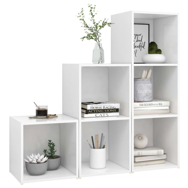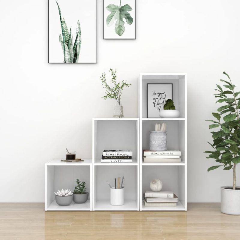 Комплект ТВ шкафове от 3 части, бял, инженерно дърво