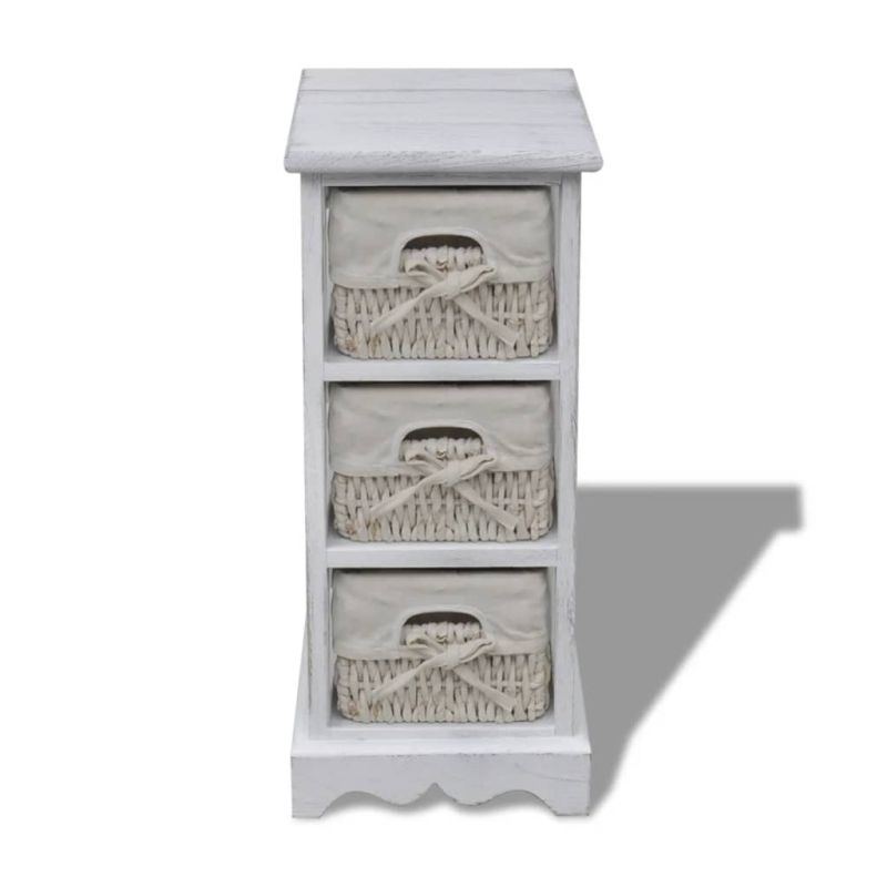 Бял дървен стелаж с 3 плетени кошници за съхранение