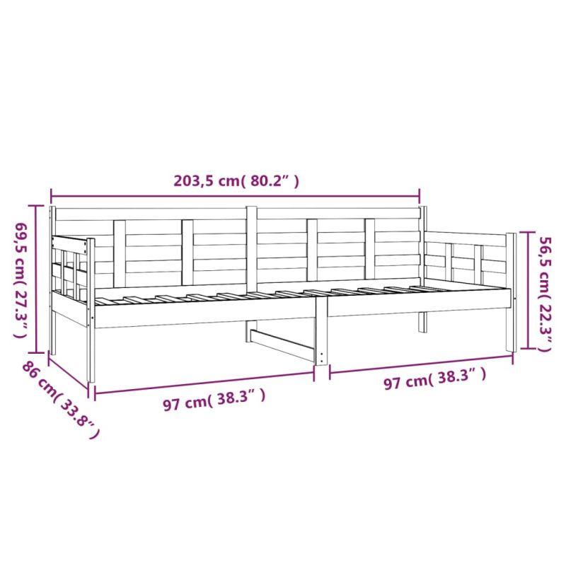 Това дървено дневно легло ще бъде идеално за настаняване на неочаквани гости с преспиване, като същевременно осигурява удобно място за сядане през деня. Масивна борова дървесина: Масивната борова дървесина е красив естествен материал. Боровата дървесина има прави шарки, а възлите придават на материала характерния му рустик вид.Многофункционален дизайн: Това дневно легло от масивно дърво може да се използва като диван през деня и като легло през нощта, осигурявайки бързо решение за настаняване на нощуващи гости.Здрави ламели: Ламелите на тази рамка за дневно легло осигуряват допълнителна опора на вашето легло. Те удължават живота на вашия матрак, като поемат по-голямата част от напрежението и тежестта върху леглото. Забележка:Доставката включва само рамка за дневно легло. Матракът не е включен. Можете да проверите в нашия магазин за подходящи матраци.Тази рамка за легло е подходяща за матрак с размери 80 x 200 см.Всеки продукт се доставя с ръководство за сглобяване в кашона за лесно сглобяване.