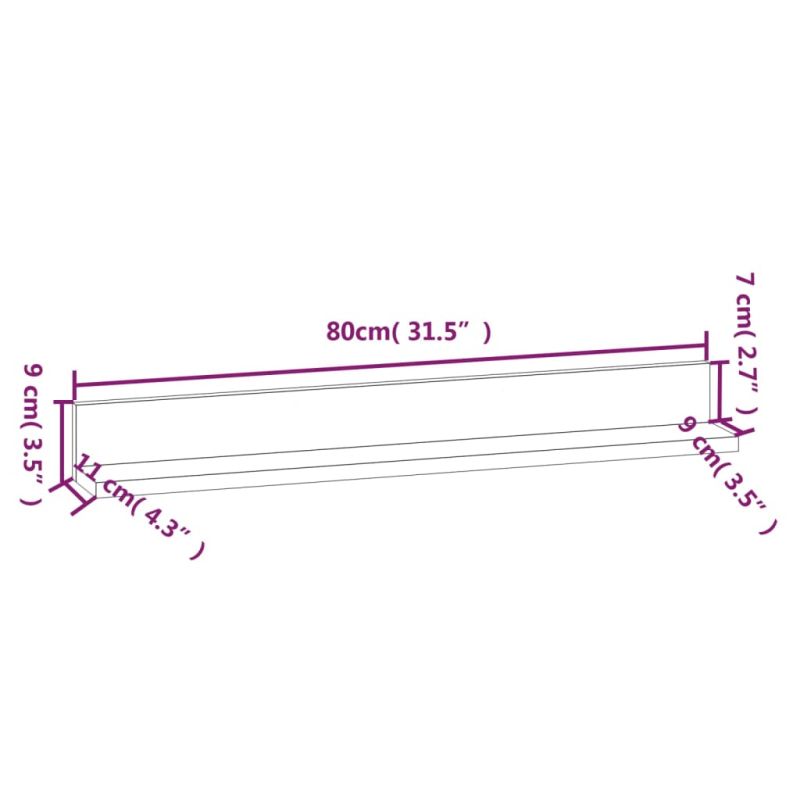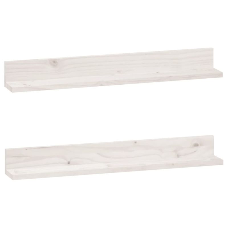 Стенни рафтове, 2 бр, бели, 80x11x9 см, масивно борово дърво