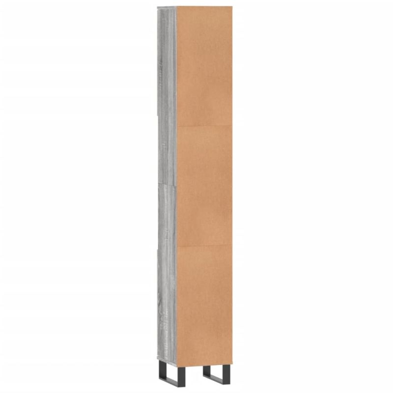 Шкаф за баня, сив сонома, 30x30x190 см, инженерно дърво