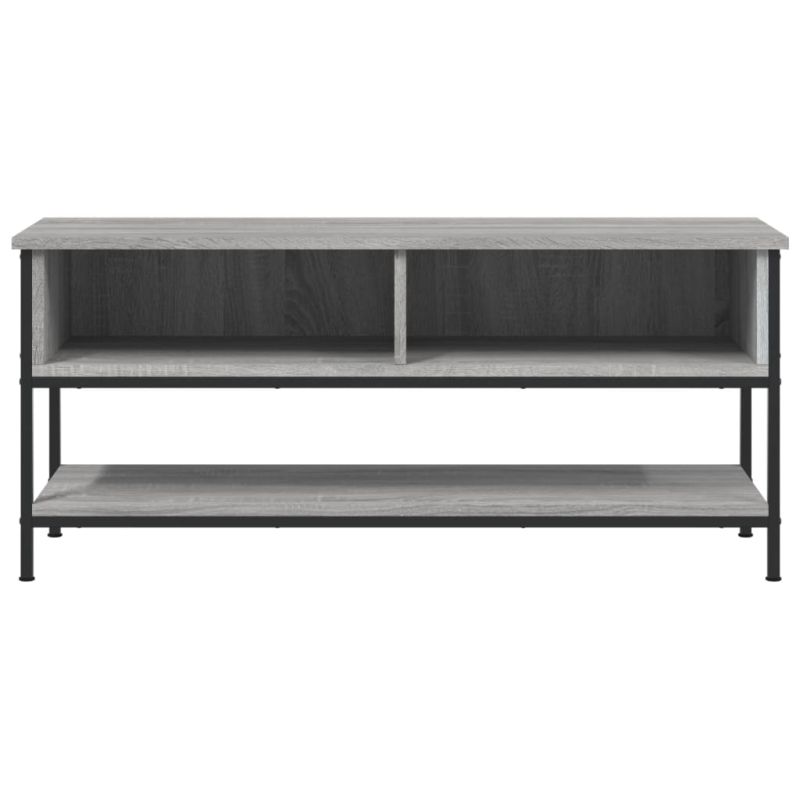 Този класически ТВ шкаф е практично, но и атрактивно допълнение към вашия интериор. Издържлив материал: Инженерната дървесина е с изключително качество с гладка повърхност и също така се отличава със здравина, стабилност и устойчивост на влага.Достатъчно място за съхранение: ТВ поставката разполага с 2 отворени отделения и 1 рафт, където да подредите DVD плейъри, конзоли за игра, стрийминг устройства и медийни носители по достъпен и организиран начин.Железни крака: Железните крака добавят индустриален стил към вашия интериор, като същевременно гарантират стабилност.Декоративна функция: Здравата горна част на ТВ модула е идеална за нареждане на декоративни предмети, като рамки за снимки и растения.