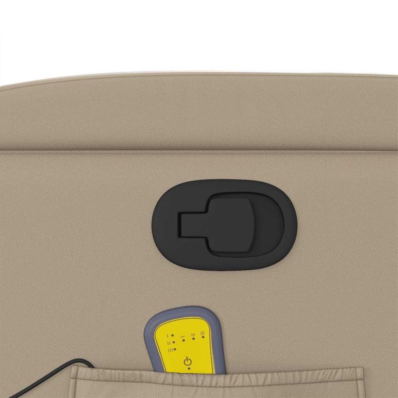 Облегнете се и се отпуснете в този изключително комфортен масажен наклоняем стол! Функция за ръчно накланяне: Този накланящ се стол има дръжка от дясната страна. Можете ръчно да настроите поставката за крака и облегалката до произволна позиция според вашето удобство с просто издърпване на дръжката. Тази функция позволява максимален наклон от 135 градуса. Освен това облегалката може бързо да се върне на първоначалното си място с лесно издърпване на дръжката.Функция за вибрация: Представените 6 масажни точки ви позволяват да изпитате по-целенасочен масаж. Освен това включеното ръчно управление ви позволява да избирате различни програми за масаж. Функцията за масаж се захранва от USB конектора, но сертифицираният 5V USB източник на захранване не е включен.Удобно седене: Дебело подплатената седалка, облегалката и широките подлакътници, покрити с изкуствена кожа, осигуряват уютно усещане, което ви кара да се чувствате като в прегръдка, докато седите. Изкуствената кожа е много издръжлив материал. Устойчива е на петна, което я прави лесна за почистване с влажна кърпа. Гладката повърхност също така придава луксозен вид и красотата на естествената кожа.Удобни поставки за чаши и страничен джоб: Този фотьойл разполага с две удобни поставки за чаши за вашите напитки и страничен джоб за вашето дистанционно управление или за поддържане на вашите основни вещи леснодостъпни.Здрава и стабилна рамка: Рамката, изработена от дърво и метал, осигурява здрава структура и стабилност. Този накланящ се фотьойл е удобен и издръжлив. Максимално 110 кг на седалка. GPSR