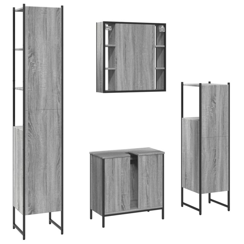 Комплект шкафове за баня от 4 части сив сонома инженерно дърво