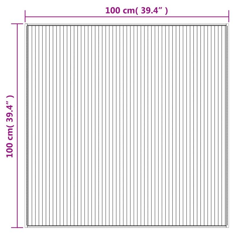 Придайте естествен вид на стаята ви! Този модерен бамбуков килим е идеално допълнение към всеки декор. Издръжлив и дълготраен: Като естествен материал, бамбукът може да се похвали с добра дишаемост и слаба миризма. Тези качества правят бамбуковите килими издръжливи, водоустойчиви и дълготрайни.Противоплъзгаща основа: Този килим може да се фиксира стабилно към земята със своята противоплъзгаща подложка, за да ви предпази от подхлъзване.Лесен за почистване и съхранение: Изработен от естествен, здрав бамбук, този килим се почиства лесно. Също така може да се навие на руло за лесно съхранение и транспортиране.Неутрални тонове: Неутралните му тонове ще се съчетаят добре с различни интериорни стилове. Добре е да се знае:Дървото/бамбукът е естествен продукт и може да покаже несъвършенства.Тъй като това е естествен продукт, ширината на бамбуковата летва може да варира с +/- 1 mm и малките разлики са често срещани.