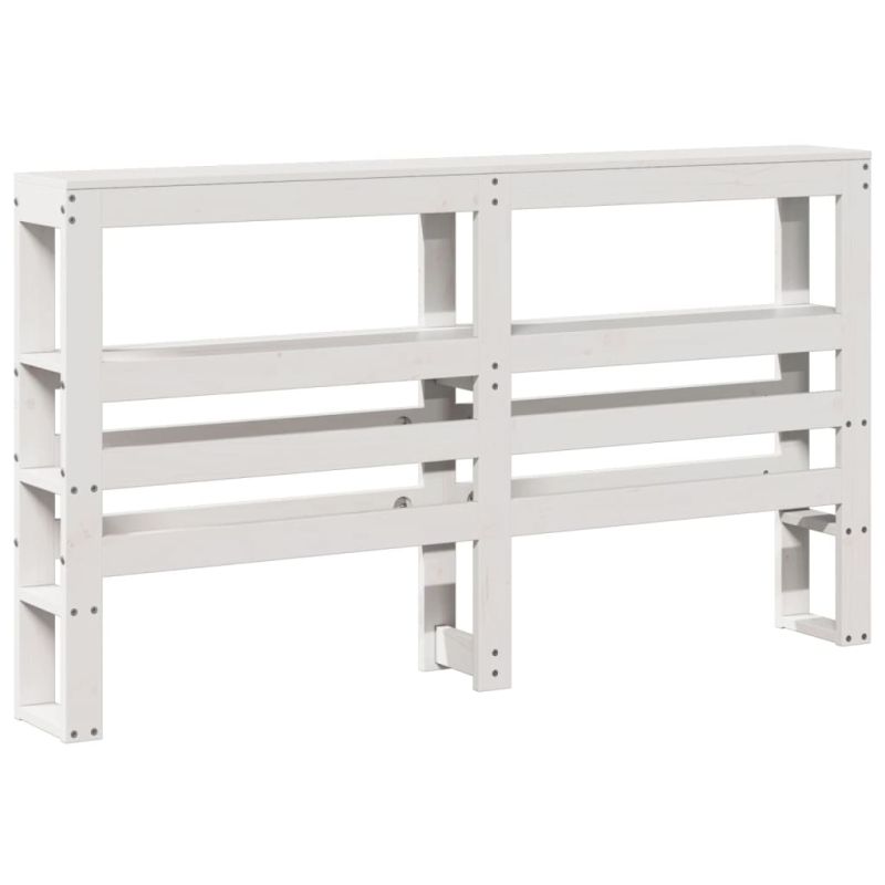 Горна табла с рафтове, бяла, 120 см, масивно дърво бор