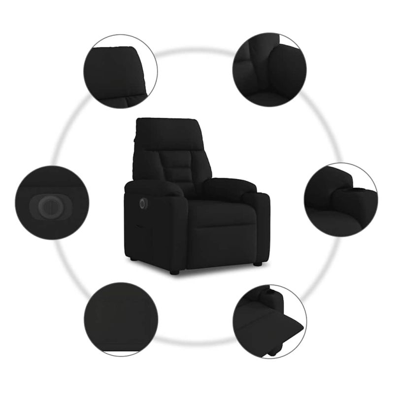 Облегнете се и се отпуснете в този изключително комфортен електрически наклоняем стол! Електрическа функция за накланяне: Този стол с облегалка е оборудван с електрически мотор, който помага автоматично да регулирате поставката за крака и облегалката до произволна позиция според вашето удобство с просто натискане на бутона отстрани на стола. Тази функция позволява максимален наклон от 135 градуса. Освен това облегалката може да се върне автоматично на първоначалното си място с лесно натискане на бутона.Удобно седене: Дебело подплатената седалка, облегалка и широки подлакътници, покрити с текстил, осигуряват уютно и топло усещане, което ви кара да се чувствате като в прегръдка, докато седите. Тъканта се отличава със семпъл и изчистен вид и е дишаща и издръжлива.Здрава и стабилна рамка: Рамката, изработена от дърво и метал, осигурява здрава структура и стабилност. Този накланящ се фотьойл е удобен и издръжлив. Този уред може да бъде използван от деца над 8 години и лица с намалени физически, сензорни или ментални възможности или липса на опит и знание, ако са под надзор и са им дадени инструкции относно употребата на уреда по безопасен начин и осъзнават съществуващите опасности. Децата не трябва да си играят с уреда. Почистването и потребителската поддръжка не трябва да се правят от деца без надзор.