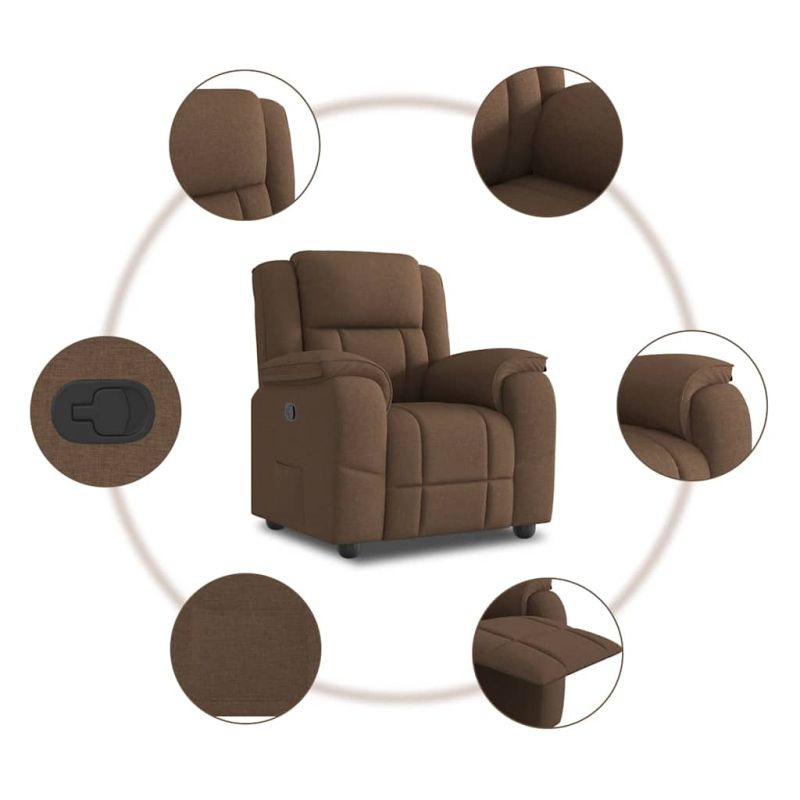 Облегнете се и се отпуснете в този изключително комфортен наклоняем стол! Функция за ръчно накланяне: Този накланящ се стол има дръжка от дясната страна. Можете ръчно да настроите поставката за крака и облегалката до произволна позиция според вашето удобство с просто издърпване на дръжката. Тази функция позволява максимален наклон от 135 градуса. Освен това облегалката може бързо да се върне на първоначалното си място с лесно издърпване на дръжката.Удобно седене: Дебело подплатената седалка, облегалката и широките подлакътници, покрити с текстил, осигуряват уютно и топло усещане, което ви кара да се чувствате като в прегръдка, докато седите. Тъканта се отличава със семпъл и изчистен вид и е дишаща и издръжлива.Удобен страничен джоб: Този фотьойл има страничен джоб, за да държите основните си вещи леснодостъпни.Здрава и стабилна рамка: Рамката, изработена от дърво и метал, осигурява здрава структура и стабилност. Този накланящ се фотьойл е удобен и издръжлив.