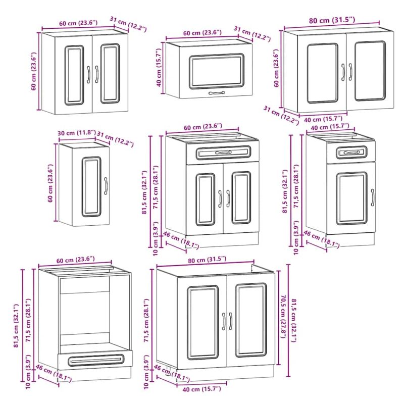 Комплект кухненски шкафове от 8 части Kalmar, инженерно дърво