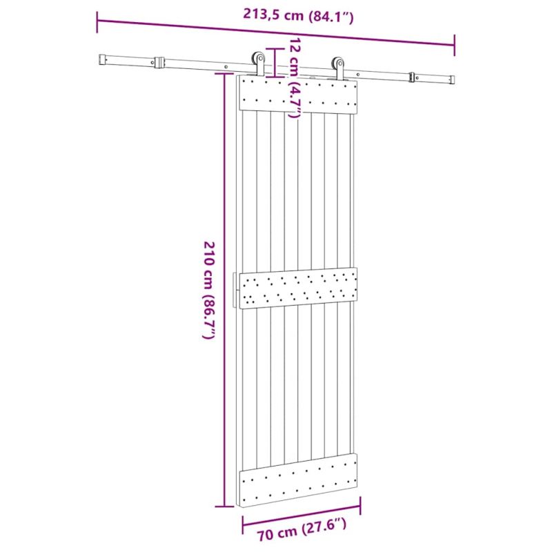 Плъзгаща врата с монтажни части, 70x210 см, борово дърво масив