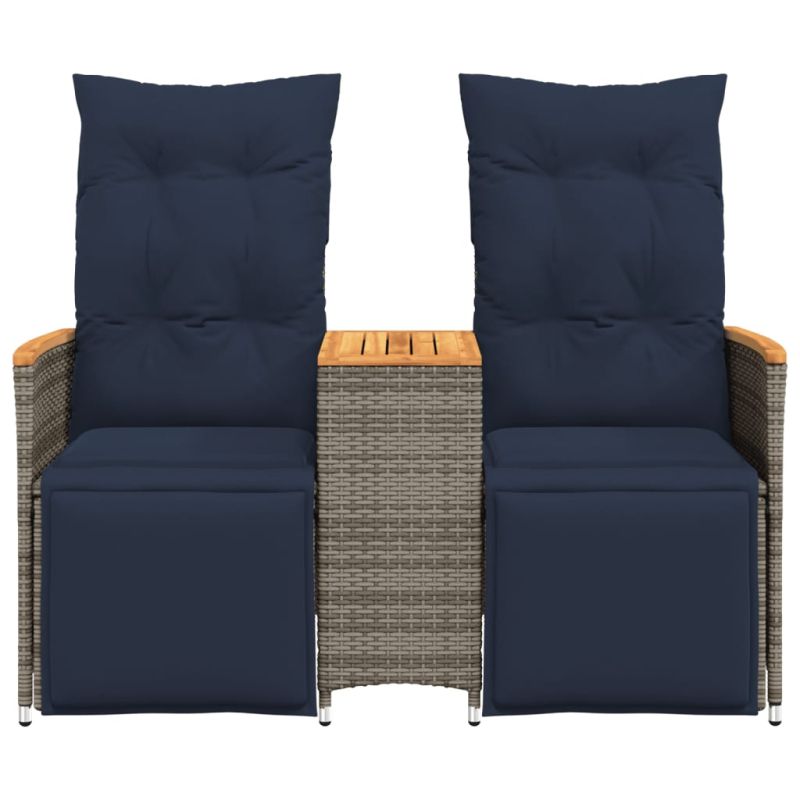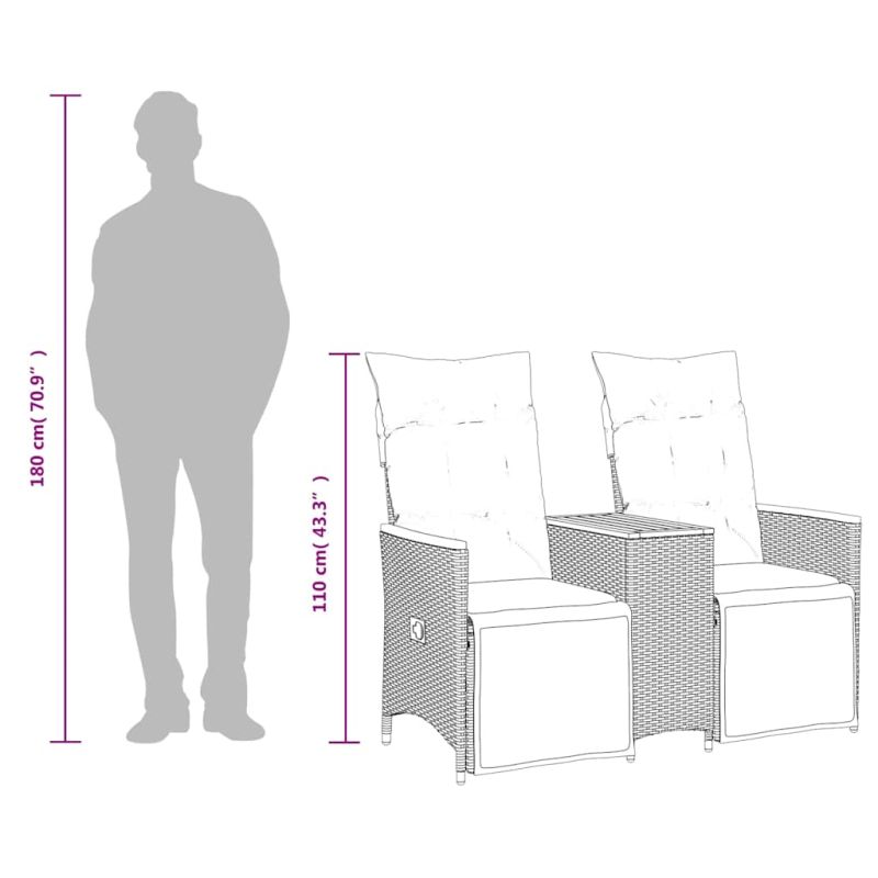 Отпуснете се и се насладете на открито в този удобен градински диван с възможност за накланяне! Издръжлив материал: PE ратанът, известен още като полиратан, е здрав, лесен за поддръжка синтетичен материал, който прилича на естествен ратан. Той е лек, лесен за почистване и често се използва за градински мебели поради своята издръжливост и устойчивост на атмосферни влияния.Удобна централна маса: Тази градинска мебел разполага с вградена централна маса, осигуряваща удобно място за съхранение на вашите най-важни вещи под ръка.Регулируема облегалка и поставка за крака: Тази градинска седалка има дръжка. Можете да регулирате облегалката и поставката за крака във всяка позиция, като издърпате дръжката, и бързо да ги върнете в първоначалните им позиции.Комфортно седене: Тази градинска мебел, оборудвана с дебело подплатени възглавници, предлага удобно седене.Свалящ се и перещ се калъф: Тези възглавници за седалки имат свалящи се калъфи за лесно пране и поддръжка. Полезно е да знаете:За да сте сигурни, че вашите градински мебели ще останат красиви, препоръчваме да ги защитите с водоустойчив калъф.