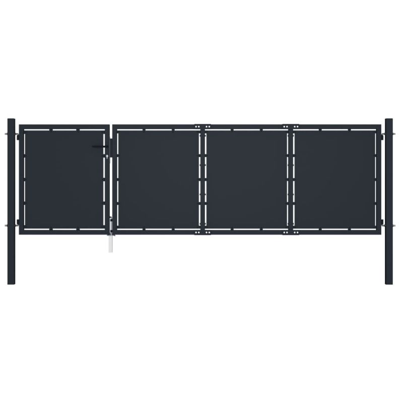 Нашата стоманена оградна врата ще бъде идеален входен портал за оградата около вашата градина или вътрешен двор. Градинската порта е изработена от стомана, което гарантира нейната отлична издръжливост и стабилност. Здравата структура придава на оградната порта допълнителна издържливост. В допълнение, нашата градинска порта ще осигури висока степен на сигурност и неприкосновеност, като същевременно оформи приказен вход към вашия имот. Тази порта се доставя с два здрави стълба с издържливи панти за лесна инсталация. Портата се доставя с включени комплект ключалка, дръжка и заземителен щифт.