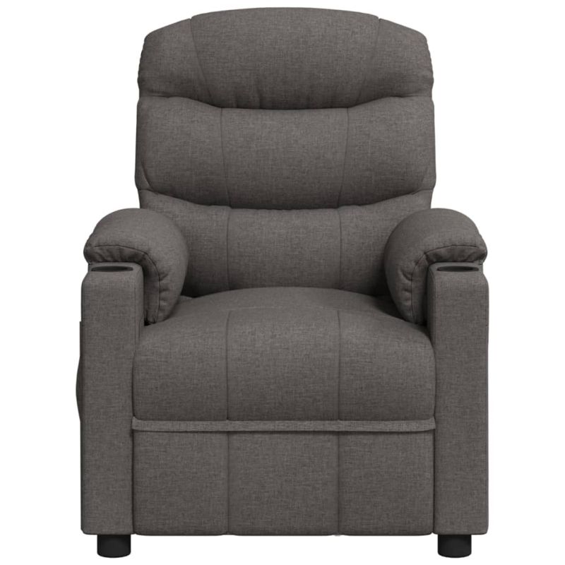 Облегнете се и се отпуснете в този изключително комфортен електрически масажен стол! Електрическа функция за накланяне: Столът с облегалка е оборудван с електрически мотор за функция за накланяне. Разполага с 3 позиции на легнало положение, така че можете лесно да регулирате облегалката и поставката за крака с включеното ръчно управление с 2 бутона според вашето удобство.Функция за вибрация: Представените 6 масажни точки ви позволяват да изпитате по-целенасочен масаж. Освен това включеното ръчно управление ви позволява да избирате различни програми за масаж. Функцията за масаж се захранва от USB конектора, но сертифицираният 5V USB източник на захранване не е включен.Удобно седене: Дебело подплатената седалка, облегалката и широките подлакътници, покрити с текстил, осигуряват уютно и топло усещане, което ви кара да се чувствате като в прегръдка, докато седите. Тъканта се отличава със семпъл и изчистен вид и е дишаща и издръжлива.Здрава и стабилна рамка: Рамката, изработена от дърво и метал, осигурява здрава структура и стабилност. Този накланящ се фотьойл е удобен и издръжлив.
