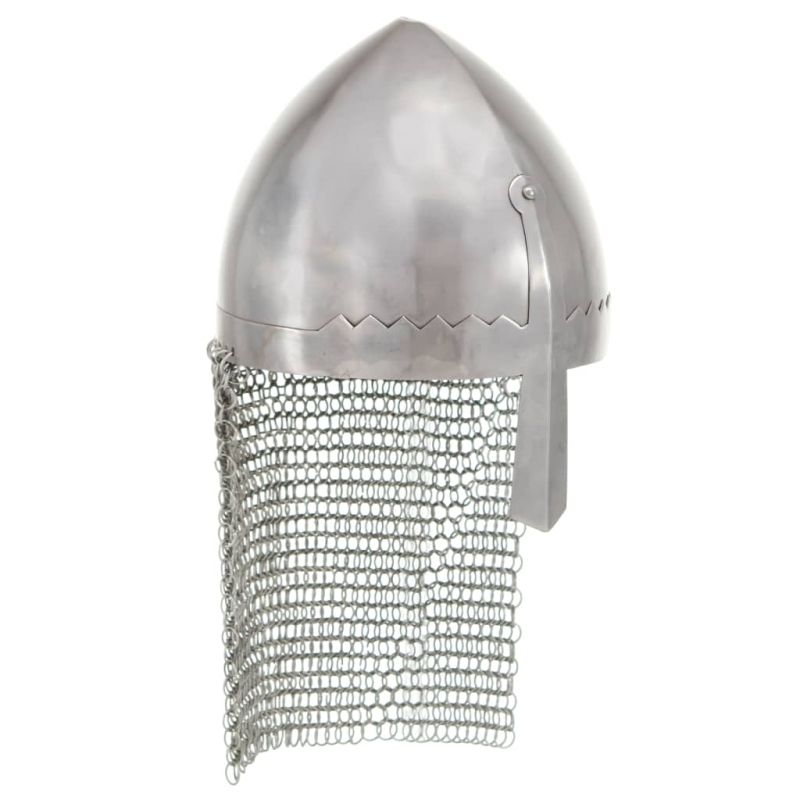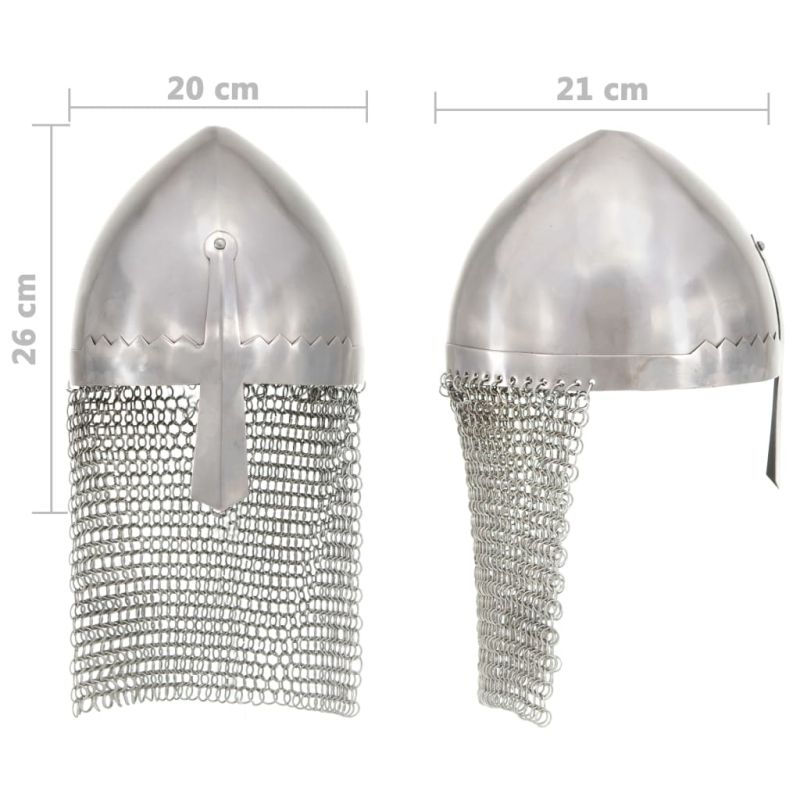 Този античен военен шлем е чудесен за ЛАРП (ролева игра на живо), косплей, партита на историческа тема, Хелоуин парти, театрални реквизити и исторически възстановки. Военният шлем е точна реплика на оригинален изтоноевропейски шлем. Изработен от стомана с дебелина 18 gauge, той съчетава античен стил и здрав материал в атрактивен шлем, който идеално ще пасне на вашия рицарски тоалет. Нашият рицарски шлем е с предпазител за носа, който предоставя чудесна защита за носа ви. При това той е с атрактивен дизайн.