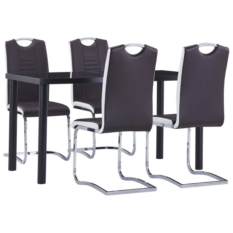 Трапезен комплект от 5 части, кафяв, изкуствена кожа