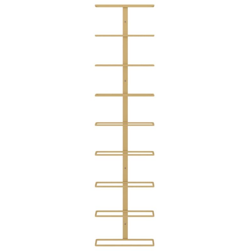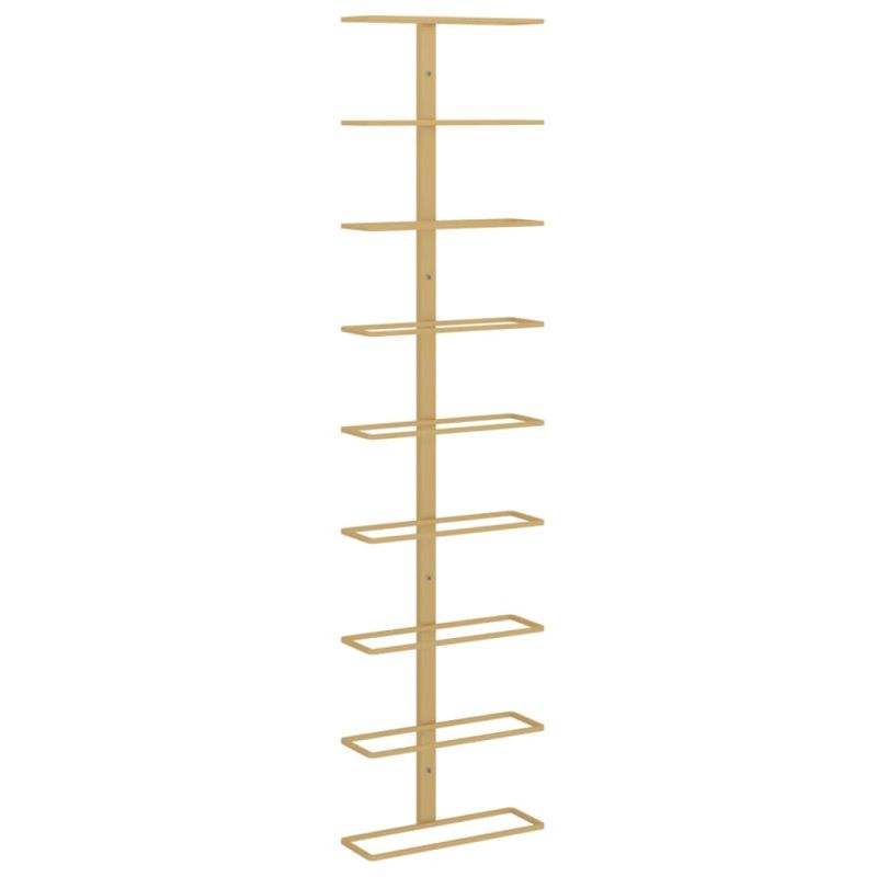Стойка за вино за 9 бутилки, стенен монтаж, златиста, желязо