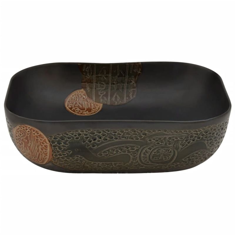 Мивка за плот, черна, правоъгълна, 48x37,5x13,5 см, керамика