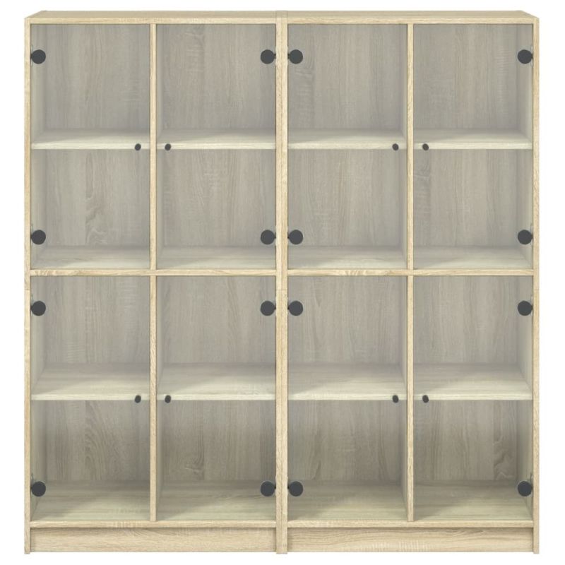 Тази библиотека предоставя идеално решение за организиране на вашите книги и ще добави модерен чар към вашия интериор. Издържлив и здрав материал: Инженерната дървесина е с изключително качество с гладка повърхност и също така се отличава със здравина, стабилност и устойчивост на влага.Достатъчно място за съхранение: Рафтът за книги предлага достатъчно място за съхранение за поддържане на вашата колекция от книги, списания и документи в добро състояние.Стабилен и здрав плот: Горната част на шкафа за съхранение е идеална за излагане на вашите декоративни предмети, рамки за картини и саксийни растения.Практичен дизайн: Пазете най-важните неща от прах, като ги скриете зад стъклените врати. Освен това черните дръжки улесняват отварянето на рафта за книги. Внимание:За да предотвратите преобръщане, този продукт трябва да се използва с предоставеното устройство за закрепване на стена.