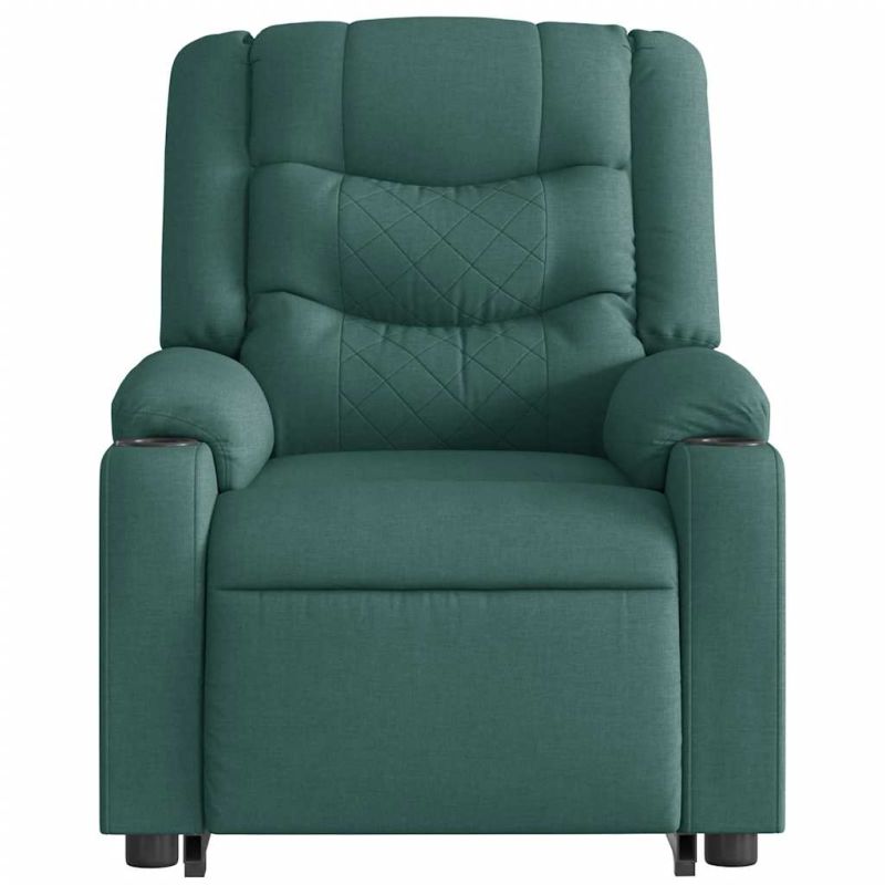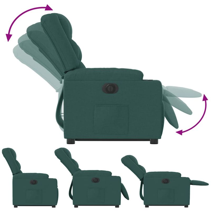 Електрически изправящ реклайнер стол, тъмнозелен, текстил