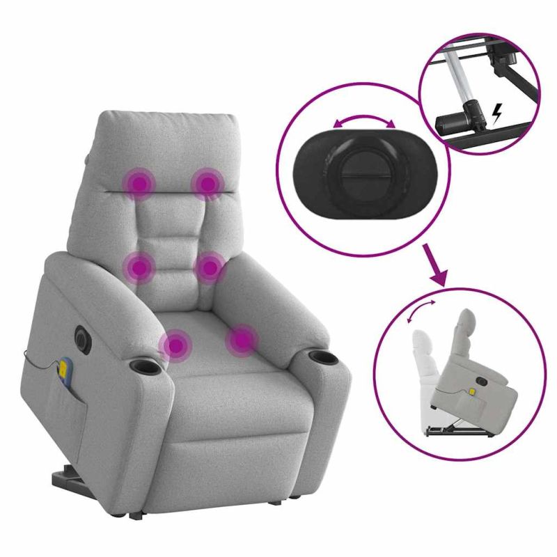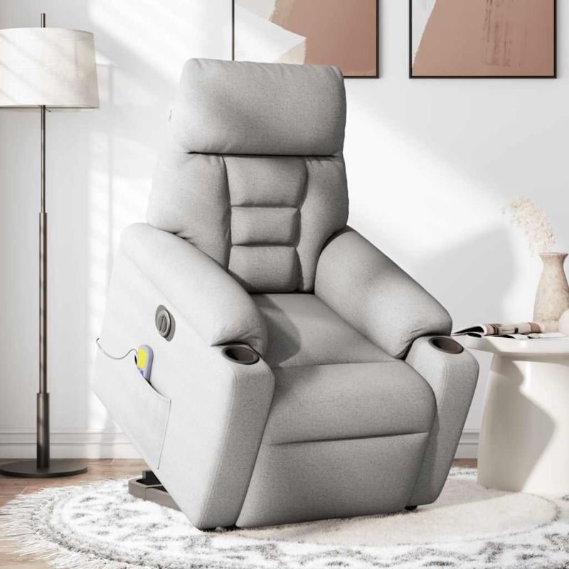 Електрически изправящ масажен реклайнер стол облачносив текстил