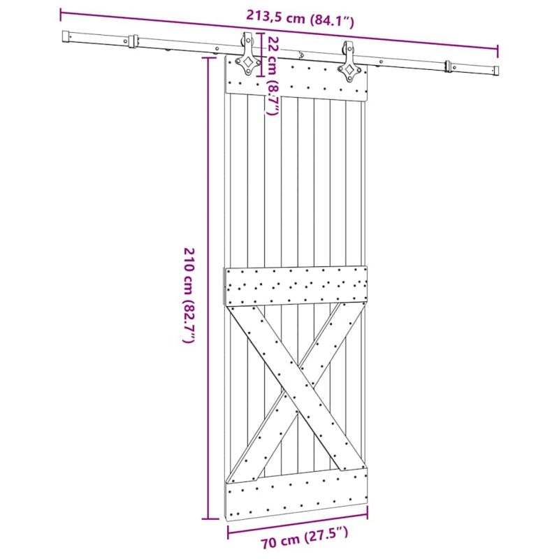 Плъзгаща врата с монтажни части, 70x210 см, борово дърво масив