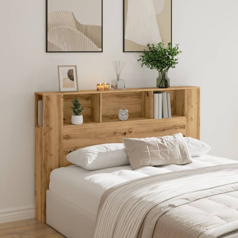 Този стилен шкаф за табла придава завършен вид на рамката на леглото ви и е подходящ за всяка спалня. Стабилен и издръжлив материал: Инженерната дървесина е издръжлив и стабилен материал с гладка повърхност, устойчива на влага, деформация и цепене, което го прави надежден избор за различни проекти.Достатъчно място за съхранение: Тази елегантна табла за легло разполага с пет удобни отделения, предлагащи достатъчно място за съхранение, за да държите всички ваши нощни принадлежности под ръка.Спестяване на място: Тази табла за книги е вариант за пестене на място, който може да замени нуждата от нощно шкафче, помагайки за максимално използване на пространството в спалнята ви и го прави идеален за малки или ограничени пространства.Лесна поддръжка: Благодарение на гладката си повърхност, таблата за спалня е лесна за почистване с влажна кърпа и изисква по-малко поддръжка. Предупреждение:За да се предотврати преобръщането му, този продукт трябва да се използва с предоставеното устройство за закрепване към стена.