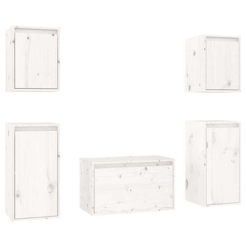 ТВ шкафове, 5 бр, бели, бор масив