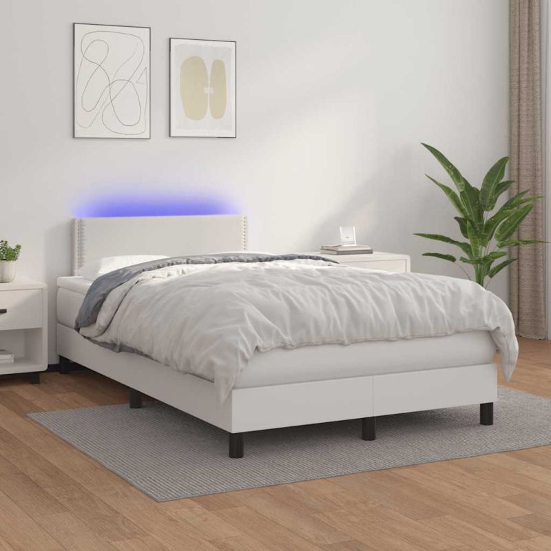 Боксспринг легло с матрак и LED бяло 120x190 см изкуствена кожа
