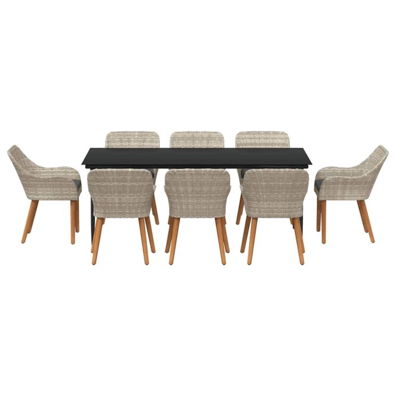 Този стилен комплект за хранене на открито е идеален за хора, обичащи елегантността и практичността. Перфектно е за хранене на свеж въздух, съчетавайки съвременен дизайн с полезни функции. Изчистеният му вид и удобните места канят гостите да се наслаждават на храната сред природата. Материали: Изработен е от качествен полиратан, който е както добър на вид, така и устойчив на UV лъчи и влага. Металната рамка осигурява допълнителна здравина без да жертва вида на ратана, а почистването е супер лесно. Включени компоненти: Комплектът включва маса и столове с интелигентно проектирани крака за стабилност. Местата са удобни и перфектно се съчетават по размер с масата за безпроблемно хранене. Характеристики / Функция / Дизайн: Комплектът удобно настанява няколко души, отлично за събирания и партита. Комбинира стил и издръжливост, което го прави идеален за съвременните градини. Препоръчителни употреби: Перфектен за тераси и градини, този комплект се вписва добре в разнообразни социални ситуации. От семейни барбекюта до романтични вечери, той е универсален. Грижа и поддръжка: За да изглежда винаги добре, покривай комплекта, когато не го ползваш. Бързото избърсване е достатъчно, за да премахнеш праха и да го поддържаш в отлично състояние.
