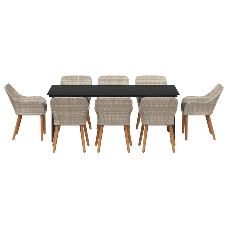 Този стилен комплект за хранене на открито е идеален за хора, обичащи елегантността и практичността. Перфектно е за хранене на свеж въздух, съчетавайки съвременен дизайн с полезни функции. Изчистеният му вид и удобните места канят гостите да се наслаждават на храната сред природата. Материали: Изработен е от качествен полиратан, който е както добър на вид, така и устойчив на UV лъчи и влага. Металната рамка осигурява допълнителна здравина без да жертва вида на ратана, а почистването е супер лесно. Включени компоненти: Комплектът включва маса и столове с интелигентно проектирани крака за стабилност. Местата са удобни и перфектно се съчетават по размер с масата за безпроблемно хранене. Характеристики / Функция / Дизайн: Комплектът удобно настанява няколко души, отлично за събирания и партита. Комбинира стил и издръжливост, което го прави идеален за съвременните градини. Препоръчителни употреби: Перфектен за тераси и градини, този комплект се вписва добре в разнообразни социални ситуации. От семейни барбекюта до романтични вечери, той е универсален. Грижа и поддръжка: За да изглежда винаги добре, покривай комплекта, когато не го ползваш. Бързото избърсване е достатъчно, за да премахнеш праха и да го поддържаш в отлично състояние.