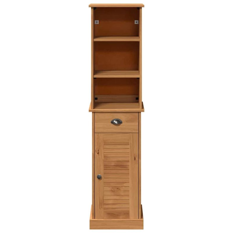 Този рустикален комплект за баня е проектиран да донесе топлина и нотка на селски чар на всяко банево пространство. Комплектът предлага прецизно изработена комбинация от материали, предоставяйки класическа естетика. Неговата гладка повърхност и правоъгълна форма го правят както функционално, така и стилно парче, предоставяйки достатъчно опции за съхранение за баневите ви неща. Идеален за тези, които искат да повишат привлекателността на банята си, този комплект е становище на вкусна рустикална топлина и практичност. Рустикален естетик: Добавете нотка рустикален чар на банята си. Естествената, сурова красота на мебелите е подсилена от топлото покритие, предизвикващо усещане за вечна елегантност, която безпроблемно се съчетава с различни баневи декори. Насладете се на естетическото звучене на масивна борова и инженерна дървесина, която прибира природата у вас. Ефективно съхранение: Единицата предлага интелигентна комбинация от рафтове, чекмеджета и врати, всяко от тях проектирано да максимизира съхранението без да компрометира стила. Продуманите рафтове предоставят достатъчно пространство за козметика и кърпи, докато вратите с панти и традиционните дръжки за чекмеджета предлагат лесен достъп до необходимите ви неща за грижа. Здрава конструкция: Изработена с прецизност от масивна борова дървесина, всяка част осигурява дълготрайна употреба и запазва визията си с времето. Инженерните дървесни компоненти добавят стабилност и здравина, допълвайки дървената конструкция за надеждно решение за съхранение. Гъвкавост на инсталацията: Дизайнът на комплекта е съобразен с лесна сглобяемост с прости инструменти като отвертка, бормашина и чук. Настройте с увереност, знаейки, че това парче мебел може лесно да стане основен елемент на организацията и стила на вашия дом. Инструкции за грижа: Тази устойчива единица изисква минимална поддръжка. За безопасност, се препоръчва закрепване на високите мебели към стената. Избягвайте използване на агресивни химикали, за да запазите покритието непокътнато и да поддържате приветлива атмосфера в банята през годините.