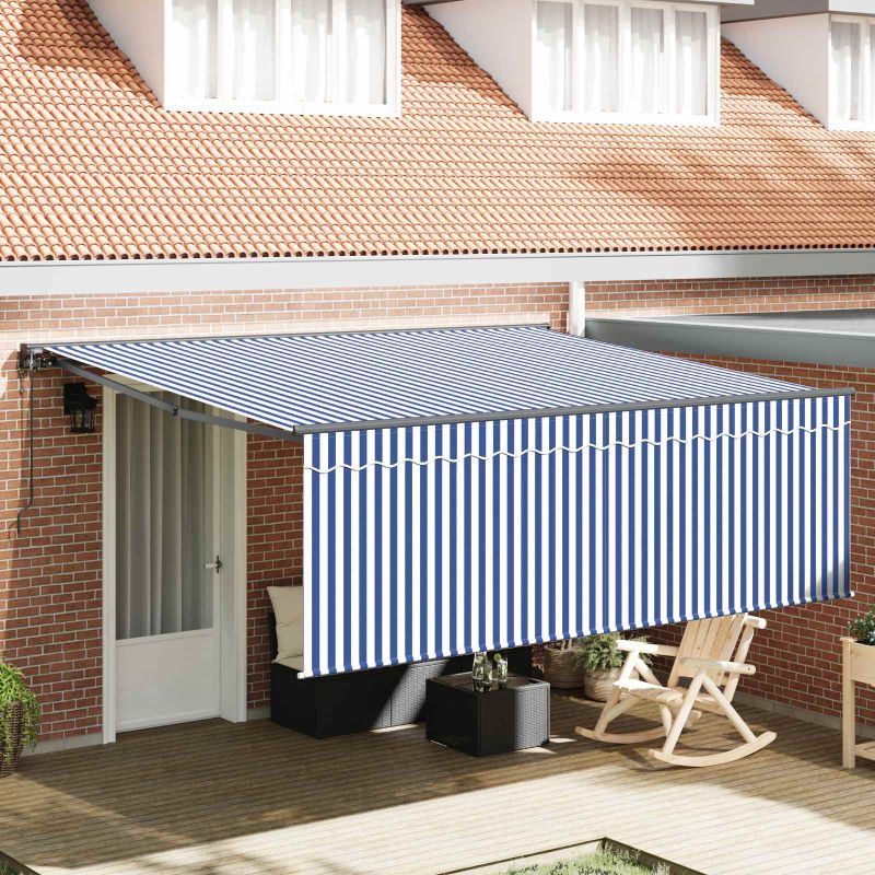 Този модерен прибираем сенник е с размери 400 x 300 см, което го прави идеален за вашите outdoor пространства. Елегантният му дизайн е перфектен за всяка градина или тераса, предлагайки практично укритие от слънце и дъжд. Чистите линии и минимализмът му го правят чудесно допълнение към всякакъв стил на открито. Устойчиви материали: Изработен от полиестер и алуминий, този сенник не избледнява. Силната алуминиева рамка осигурява необходимата стабилност, а полиестерната тъкан гарантира дълготрайна използваемост дори в лошо време. Напреднали функции: С дистанционното управление, контролът е лесен. Прибираемият дизайн позволява бързо отваряне и затваряне, идеалният начин да регулирате сянката си без усилие. Защита от времето: Изработен, за да устои на различни метеорологични условия, включително UV лъчи, този сенник осигурява непрекъсната защита както за мебелите, така и за обитателите. Въпреки това, тъканта запазва цвета си и не се поврежда с времето. Многофункционални приложения: Отличен за всякакви outdoor събирания или индивидуална почивка, този прибираем сенник е достатъчно гъвкав, за да се адаптира към всякакви условия, независимо дали организирате барбекю, или просто четете на спокойствие. Лесна поддръжка: Изисква минимална поддръжка — просто избършете с кърпа и поддържайте механичните части. Уверете се, че го прибирате при силни ветрове или сняг, за да удължите живота му. Опасност! Силен отскок при отваряне. НЕ сваляйте това въже, освен ако не сте приключили с всички стъпки на сглобяване. Всички болтове трябва да са затегнати и елементът да е прикрепен към стената! Предупреждение! Внимавайте, когато разхлабвате рамената, защото те са под напрежение! Внезапното освобождаване на рамо на сгъваема тента може да причини нараняване. Внимание: Инструкциите за ползване трябва да бъдат прочетени преди употребата на продукта. Предупреждение: Работата в студени условия може да повреди продукта. Външна употреба в сгради и други строителни обекти. Не позволявайте на деца да си играят с управляващото устройство на щората. Дръжте дистанционното управление далеч от деца. Децата трябва да бъдат наблюдавани, за да се гарантира, че не играят с уреда. Пазете децата далеч от зоната за сглобяване. Внимание: Прочетете внимателно инструкциите преди употреба и ги запазете за по-нататъшни справки.